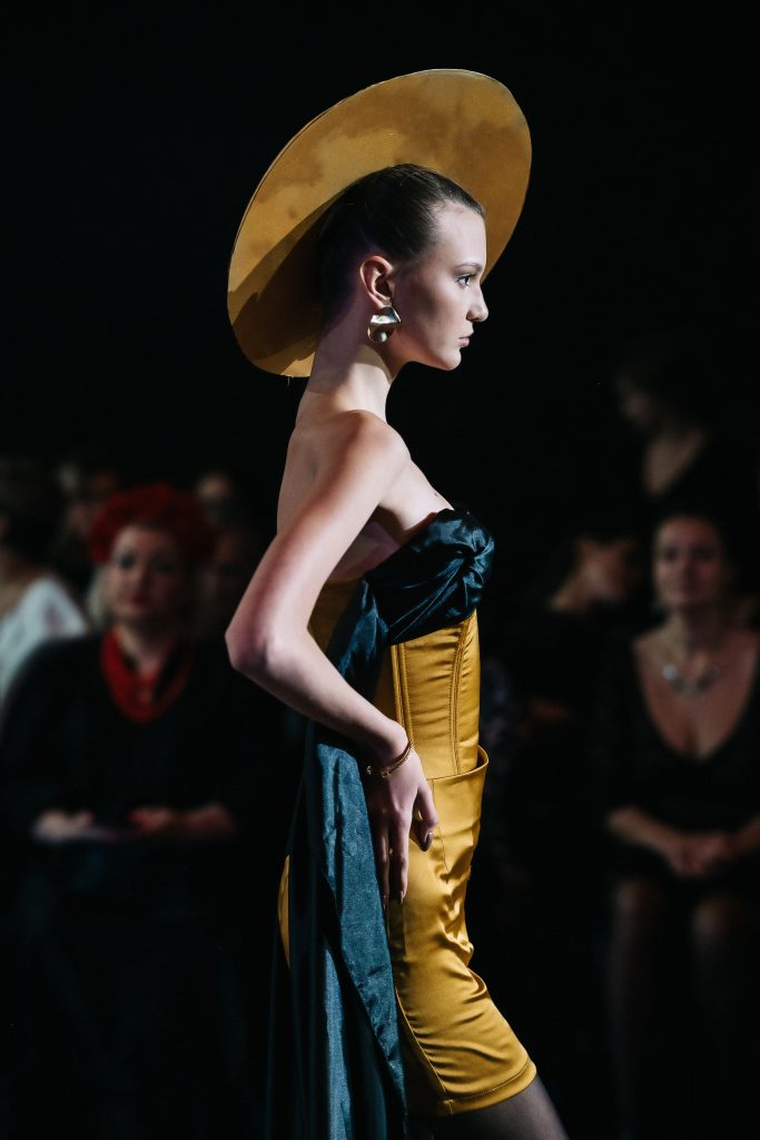Российские дизайнеры вплетают в этот контекст собственный код — локальные мотивы, вышивку, павлопосадские узоры, кружева, кокошники в современной интерпретации. Эта связь с корнями не просто украшает коллекции, она делает их узнаваемыми на фоне мировых брендов и подчёркивает идею устойчивого, вдумчивого подхода к моде — когда платье создаётся не «на сезон», а на вне времени.