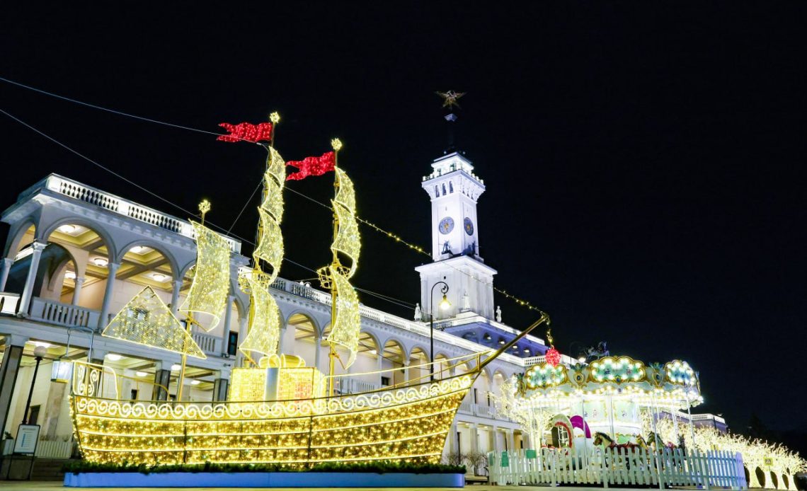 «Тематические конструкции представляют собой корабли с наполненными ветром парусами, на палубе которых установлены новогодние подарки. Длина каждого судна составляет 10 метров, они украшены яркой светодиодной подсветкой. Фрегаты разместили возле зданий вокзалов, рядом с ними установили новогодние ели, декорированные разноцветными шарами, звездами, светящимися гирляндами и другими украшениями. На Северном речном вокзале дополнительно смонтировали световые деревья», – рассказал заместитель Мэра Москвы Петр Бирюков.