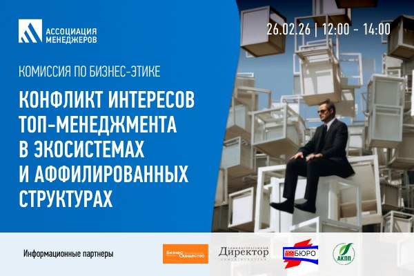 26 февраля пройдет заседание отраслевой комиссии по бизнес-этике Ассоциации менеджеров на тему: «Конфликт интересов топ-менеджмента в экосистемах и аффилированных структурах». Эксперты обсудят, как соблюдать бизнес-этику в сложных корпоративных экосистемах.