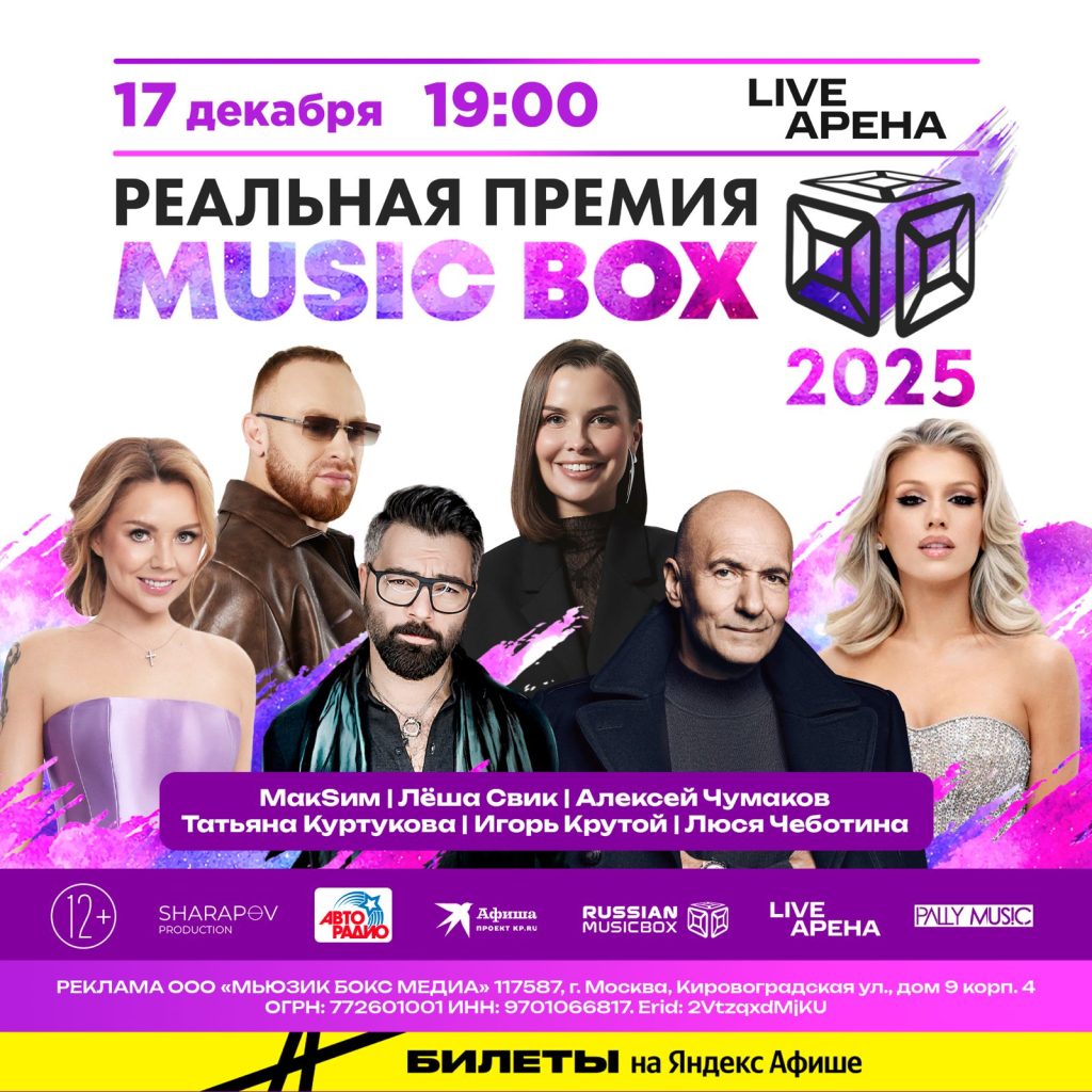 Грандиозное шоу — «РЕАЛЬНАЯ ПРЕМИЯ MUSICBOX 2025» от телеканала RUSSIAN MUSICBOX. В этот вечер на одной сцене соберутся главные звёзды российской эстрады, чтобы подарить зрителям незабываемое шоу