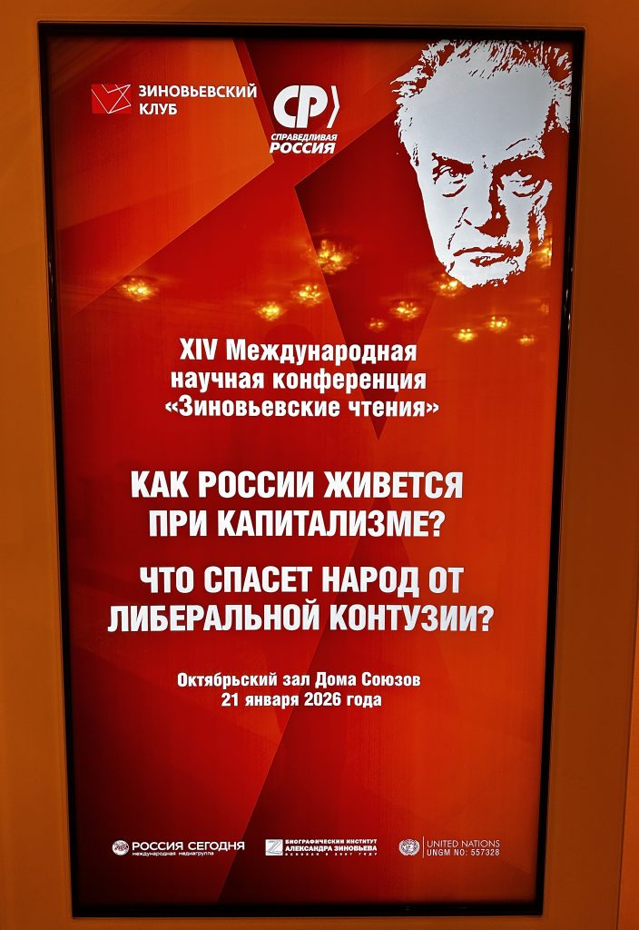 21 января в Октябрьском зале Дома Союзов состоялась XIV Международная научная конференция «Зиновьевские чтения» на тему: «Как России живется при капитализме? Что спасёт народ от либеральной контузии?»